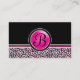 Cartes de visite monogrammes. Élégant poster de animal rose, noir et blanc - Zones léopard. ⭐ Ce produit est entièrement personnalisable. *****Cliquez sur le BOUTON PERSONNALISER pour ajouter, supprimer, déplacer, redimensionner, modifier, tourner, etc...n'importe lequel des graphiques ou du texte ou utilisez les zones de remplissage. 99% de mes dessins dans mon magasin sont faits en couches. Cela vous permet de redimensionner et de déplacer facilement les graphiques et le texte pour qu'il s'adapte parfaitement à chaque produit. ⭐ (Assurez-vous de redimensionner ou de déplacer les graphiques si nécessaire avant de commander) Vous pouvez également "TRANSFÉRER LA CONCEPTION" sur d'autres produits Zazzle et ajuster la conception à la plupart des articles Zazzle. (le bouton se trouve sur le côté droit de la page) Certains graphiques texte sont prêts à remplir la ou les cases ou vous pouvez cliquer sur le bouton "CUSTOMISER" pour ajouter, déplacer, supprimer, redimensionner, couleur arrière - plan ou modifier une police ou un graphique. La conception est faite avec un vecteur haute résolution et/ou des graphiques numériques pour une impression professionnelle. ⭐ NOTE: (C'EST UNE IMPRESSION. Tous les modèles de produit zazzle sont des "impressions" sauf indication contraire dans la section "À propos de ce produit") Le dessin sera imprimé EXACTEMENT comme vous le voyez à l'écran et sur le produit...assurez-vous donc que lorsque vous apportez vos modifications sur le redimensionnement de l'un des graphiques ou du texte qui s'insèrent correctement dans les zones et que votre orthographe et votre libellé sont tels que vous aimez qu'ils soient de taille, de couleur et de police. Si vous avez des questions sur le "DESIGN UNIQUEMENT" ou si vous avez besoin d'aide, contactez-moi à siggyscott@comcast.net ou visitez mon lien de magasin : http://www.zazzle.com/store/designsbydonnasiggy (Copier et coller) Je serai heureux de vous aider. ⭐ Toutes les autres questions (expédition, remboursement, impression, produit, etc...) veuillez contacter Zazzle ou le fabricant ⭐ DIRECTEMENT ⭐. Merci pour le support et l'arrêt par mon magasin - DesignsbyDonnaSiggy. © Donna Siegrist