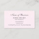 Attrapez l'attention des clients potentiels avec ce carte de visite de bokeh rose rose pâle éthérée. Personnalisez en ajoutant votre nom au carré encadré rose et or rose au centre. Il s'agit d'une image imprimée FLAT et n'est ni en relief ni métallique.
