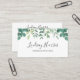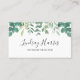 Cette élégante Carte de visite design d'intérieur est décorée d'eucalyptus à l'aquarelle et de feuillage dans les tons verts. Customisez cette carte avec votre nom et vos coordonnées. Utilisez l'option Personnaliser supplémentaire pour modifier la taille, le style ou la couleur du texte si vous le souhaitez. Parce que nous créons notre propre oeuvre, vous ne trouverez pas cette image exacte d'autres designers. Aquarelle originale © Michele Davies.