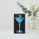 Un carte de visite barbare moderne avec une longue tige en verre rempli d'un liquide bleu exotique. Personnalisez en ajoutant le nom du traiteur comme s'il était gravé dans le verre.