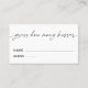 Carte De Visite EVERLEIGH Devinez Combien De Baisers Jeu Billet