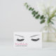 Carte de visite personnalisé avec un dessin des cils longs d'une fille en noir et blanc. Parfait pour la promotion de votre entreprise. Convient aux maquilleurs, agrandissement de la foufe, esthéticiennes, stylistes, salon de spa, salon de coiffure et de beauté ou agence modèle. Personnalisable.