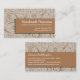 Un brun, étiquette pointillée parpolka, réminiscente du papier d'emballage est endroit sur un arrière - plan modelé floral crème, donnant une illusion de quelque chose faite main. Le panneau est répété sur l'inverse pour davantage d'information d'affaires. C'est une carte unique pour un magasin de métier ou un vendeur d'Etsy. Disponible avec les produits assortis.