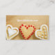 Voici un grand carte de visite pour des boulangeries, des boulangers ou n'importe qui qui veut partager de la qualité cuite au four à la maison. Les caractéristiques de conception jolies et biscuits en forme de coeur semblants savoureux sur un fond en bois naturel. Employez les champs suffisance-dans-le-vides pour customiser facilement ces cartes avec votre nom et pour entrer en contact avec l'information sur l'avant et votre adresse de site Web ou tout autre message sur le dos.