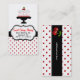 Carte de visite élégant de boulangerie fait en rouge, noir, et blanc, avec le pois rouge et blanc, sur l'avant inférieur et couvrir le dos de la carte. Les graphiques doux d'un gâteau de point de polka, avec des cerises sur le dessus, décore l'avant supérieur et un cadre décoratif noir et blanc des textes est au milieu. Les cerises rouges mignonnes décorent la bande noire des textes, sur le postérieur de la carte. Tous les avant et dos des textes est prêt à personnaliser pour vos affaires de cuisson.