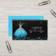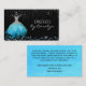 Carte de visite couturière de robe glamour, avec des graphiques d'une robe de parties scintillant bleu et argent, contre un arrière - plan noir, avec des accents de parties scintillant argent et bleu. Personnalisez le texte en fonction de vos besoins professionnels. Une belle carte de démarcation pour votre entreprise de tailleur.