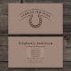 Un carte de visite simple et élégant avec une illustration d'un fer à cheval et des informations personnalisables, le tout dans les tons marron. Parfait pour des activités telles que la ferme, vétérinaire, l'entraînement et l'élevage de chevaux, instructeur d'équitation, etc.