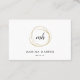 Les cartes de visite frappants disposent d'un élément abstrait en faux or, encerclant vos initiales ou monogrammes dans le script de calligraphie moderne. Personnalisez avec deux champs de texte personnalisés en dessous de votre nom et titre ou nom commercial. Ajoutez vos coordonnées complètes à l'envers. Convient à n'importe quel métier; exemple montré pour les peintres de cheveux et de maquillage. REMARQUE : IL N'Y A PAS DE FOILE D'OR SUR CE PRODUIT. L'effet or est créé à l'aide de subtiles variations de couleur qui imitent l'apparence du papier peint.