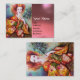 Elégant, coloré, classe, design fantaisiste avec des fleurs damassées bleues en vert clair, jaune orange, turquoise, turquase, couleurs blanches.Belle femme brune sophistiquée, rouge, vert brillant d'or tissus d'un costume baroque avec plumes paon.Peinture d'aquarelle originale avec feuille d'or et couleurs irisées.Cette carte cool et artistique est parfaite pour les stylistes de mode umers, couturiers, propriétaires de boutique, maquilleurs, cosmétiques, particuliers, consultants en armoires et autres professions créatives. Zazzle.com