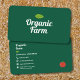 Un carte de visite simple, propre et vert avec l'illustration d'une feuille et d'une tomate pour un fermier ou une ferme familiale, en particulier pour les aliments biologiques. Au fond, il y a des informations entièrement personnalisables décorées d'icônes.