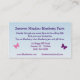Ce carte de visite présente la ferme de myrtille de pré d'été. Un panier tissé débordant avec des myrtilles est sur l'avant. Le dos a tout le texte important un puits en tant que papillons roses et pourpres. Tout le texte peut être customisé pour adapter vos affaires individuelles.