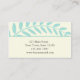 Un carte de visite élégant avec une frontière supérieure de feuille bleu sur la branche arquée. Le dos de la carte comporte le feuille bleu sur l'arrière - plan crème.