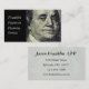Gros plan du portrait de Benjamin Franklin. Grand carte de visite emblématique pour tous les types de professions financières, y compris la banque, les investissements et la planification financière.