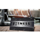 Professional Fitness Personal Trainer Gras Texte Logo Dumbbell avec Carte de visite Arrière - plan en métal noir et argent.