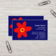 Un modèle de carte de visite/profil avec un motif floral simple et stylisé. Les coordonnées principales sont indiquées sur le devant, avec les informations sur le courriel et le site Web à l'arrière.