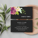 Les cartes de visite chic et fleuris du jardin arborent une poitrine de fleurs roses et pivoines dans des tons riches et luxuriants, violet violet, rose rousse et vert printemps, avec votre nom ou nom d'entreprise à l'angle. Un riche stock de carton noir donne du théâtre et de l'élégance. Ajoutez vos coordonnées au verso en blanc.