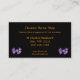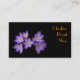 Ce carte de visite floral qui fait la publicité d'une boutique de fleuristes présente un bouquet de six fines fleurs de crocus mauve pâle, aux centres dorés posés sur un arrière - plan noir pur. Tout le texte peut être customisé pour s'adapter à votre entreprise personnelle.