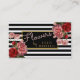 La conception florale moderne mérite une conception de carte de visite moderne de style avec des contacts vintages tels que cette conception bilatérale rayée noire et blanche de fleuriste comportant un panneau noir central avec l'équilibre modifié la tonalité par or flanqué de chaque côté avec des bouquets de jolis botanicals vintages. Conception des conceptions de coeurs de vacances (droites réservées).