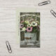 Un élégant bouquet rustique luxuriant de fleurs roses et crème dans un métal patiné peut déborder d'un délicat bouquet de fleurs crème et roses est au centre de ce design, pour une ambiance boho-chic rustique. Information et médias sociaux au verso de la carte. Parfait pour fleuriste, arrangeur floral et designer, ou jardinier.