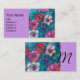 CARTE DE VISITE FLEURS BLANCHES ROUGES EN MONOGRAMME FLORAL BLEU B