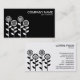 Modèle de carte de visite avec un motif de fleurs géométriques attrayant. Nom de l'entreprise et type d'entreprise sur le devant, avec nom et autres coordonnées au verso. La conception peut être customisée de diverses façons.