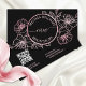 Une branche rose en or / rose pâle art cerisier fleurie branche derrière un logo avec vos initiales, nom et nom de profession dans une élégante typographie manuscrite. Le croquis floral dessiné à la main correspond à l'écriture manuscrite. Design moderne floral minimaliste sur un arrière - plan noir. Parfait pour le salon de coiffure d'artiste, fleuristes, beauté, boutique et toutes les femmes entrepreneurs. Ajoutez l'adresse URL de votre site web pour créer un code QR et personnalisez avec vos coordonnées et informations sur les médias sociaux.
