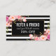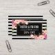 Carte De Visite Floral rose noir et blanc rayé aiguillage