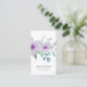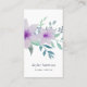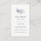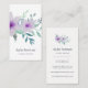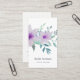 Un design carte de visite unique et élégant présente un bouquet de fleurs d'aquarelle violet et vert sauge, avec votre nom et titre ou nom d'entreprise affiché en bas. Ajoutez vos coordonnées complètes au verso en lettres bleues de minuit. Ces cartes de visite verticaux uniques font un choix chic pour fleuristes, stylistes floraux, planificateurs d'événements et bien d'autres métiers.