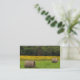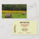 Ce foin publicitaire carte de visite à vendre présente un beau paysage d'automne. L'été est terminé et deux balles de foin séchent dans un pré vert bordant un champ de verge d'or jaune brillant. Viennent ensuite les bois. Les arbres sont pour la plupart verts mais quelques couleurs automnales de rouge et jaune commencent à apparaître. Tout le texte peut être customisé pour répondre à vos besoins professionnels personnels.