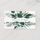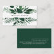 Les cartes de visite botaniques chics portent votre nom ou nom d'entreprise flanqué d'une bordure supérieure et inférieure de feuilles botaniques peints en aquarelle dans des tons riches de chasseurs et vert de forêt. Ajoutez vos coordonnées complètes à l'arrière en blanc sur la coordination vert foncé.