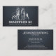 Un carte de visite audacieux et professionnel conçu pour les formateurs spécialisés dans les races de chiens de travail et la formation à la protection. La puissante illustration en noir et blanc sur le devant présente un berger allemand et un Malinois belge fort en unité. Parfait pour les formateurs K9, les académies ou les gestionnaires qui travaillent avec des chiens de protection et de service d'élite.