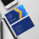 Design carte de visite professionnel avec élégantes formes géométriques modernes bleues et jaunes. Ce design premium est construit sur un modèle simple qui vous permet d'insérer le logo de votre entreprise et de personnaliser facilement avec votre propre adresse, email, adresse de médias sociaux, numéro de téléphone et numéro de téléphone mobile.