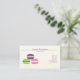 Un carte de visite aux tons pastel avec une illustration de macarons français. Il peut être utilisé pour un chef pâtissier, un magasin de macarons ou de confiseries et des gâteaux faits maison ! Il est livré avec un QR Code sur le dos et un autre dessin de macarons!