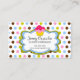 © Designs socialites. Un cupcake coloré sur un nuage de texte avec des cartes de visite de boulangerie arrière - plans à pois-pots prêts à vous personnaliser pour votre entreprise. Vous pouvez modifier le style de police et la couleur en appuyant sur le bouton "Customiser". Besoin d'AIDE pour customiser ? N'hésitez pas à me contacter.