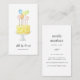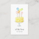Les élégants cartes de visite de votre entreprise de boulangerie, pâtisserie ou pâtisserie présentent une illustration jaune de gâteau à l'aquarelle ornée de ballons multicolores, avec deux lignes de texte personnalisé en dessous. Personnalisez l'envers avec vos coordonnées complètes.