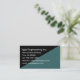 Petit carte de visite général en noir et vert ardoise. Un design carte de visite tout-usage masculin à 2 tons en noir et blanc ardoise apporte force et intégrité. Idéal pour les entreprises d'ingénierie, les arpenteurs, la construction...même des avocats. S'il vous plaît pas : tout le texte sur cette carte sera BLANC (pas vert clair comme indiqué ici) à moins que vous ne customisiez d'être une couleur différente.