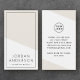 Cartes de visite verticaux modernes avec votre nom et votre titre sur le devant avec une fine bordure noire le long du bord de la carte. Champs de modèle personnalisables pour vos coordonnées et votre logo au dos. Vous pouvez modifier les couleurs des arrière - plans et des polices, déplacer et redimensionner les éléments à l'aide de l'outil de conception.