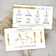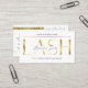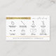 Assurez-vous que vos clients savent comment s'occuper de leurs extensions de cils avec un carte de visite professionnel de postsoins de cils. Cette carte d'instructions de soin pour extensions de verres blanc et or inclut des icônes de soin pour chaque étape, du texte faux or et une mise en page moderne. Cette carte de guide de soins de barre en or métallique design est l'ajout parfait à votre design de papeterie salon de beauté.