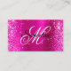 Créez votre propre parties scintillant magenta étincelante et vos cartes de visite de papier rose chaud. L'avant est doté d'un monogramme de script de calligraphie noir et blanc. Le verso contient des informations de contact de base. Vous pouvez customiser les polices et le texte au besoin. Tous les éléments graphiques et graphiques girly de ce design seront imprimés comme une photo numérique.