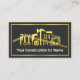 An all dark grey cover features a faux gold rectangular frame with an array of gold handyman tools above a gold rooftop. The tools can represent some of the services that you offer e.g. the hand drill can be for carpentry, the bulb for electrical services, the hammer for remodeling etc. Near the base lies your business name.