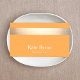 Elegant business card design featuring horizontal FAUX foil stripe on orange background. This is NOT real gold foil - but an image. There is no shine or texture. For additional matching marketing materials, custom design or logo inquiry, please contact me at maurareed.designs@gmail.com et I veut reply within 24 hours. For shipping, cardstock inquires and pricing contact Zazzle directly.