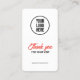 Ce simple et élégant carte de visite de remerciement est la façon parfaite de montrer votre appréciation à vos clients. Le design comprend un arrière - plan blanc et propre avec un espace pour votre logo et un message manuscrit "Merci" dans une couleur rouge et audacieuse. Caractéristiques : Conception minimaliste : Cette carte est tout sur la simplicité et l'élégance. Il est parfait pour les entreprises qui veulent faire une impression durable avec un look propre et professionnel. Espace logo personnalisable : Ajoutez facilement votre logo à la carte pour la personnaliser avec votre marque. Message Merci : Un message sincère pour exprimer votre appréciation pour l'entreprise de vos clients. Versatile : Cette carte peut être utilisée pour une variété d'entreprises, y compris les magasins de détail, les restaurants, les salons, et plus. Impression de haute qualité : La carte est imprimée sur du papier épais et durable pour une sensation de qualité supérieure.