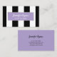 Un magnifique carte de visite rayé pour toute profession avec de larges rayures verticales en noir et blanc. Ajoutez votre nom dans un magnifique script de calligraphie sur un étiquette de lavande.