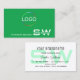 Carte De Visite Grass Vert blanc avec Monogramme et Logo Simple