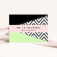 Carte de visite élégante, élégante et raffinée, avec motif en zigzag (chevron) gris et blanc avec des touches de couleur menthe et noire. Design moderne et tendance, parfait pour les amateurs de zigzag.