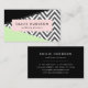 Carte de visite élégante, élégante et raffinée, avec motif en zigzag (chevron) gris et blanc avec des touches de couleur menthe et noire. Design moderne et tendance, parfait pour les amateurs de zigzag.