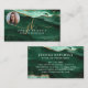 Carte de visite moderne et élégant avec agate verte et marbre avec veines de parties scintillant en faux or et accents pétillants personnalisés avec des initiales manuscrites fantaisie avec des swashes et nom et votre photo. ASSISTANCE : Pour obtenir de l'aide sur la modification ou la personnalisation de la conception ou pour coordonner des éléments, contactez le concepteur AVANT LA COMMANDE via l'onglet MESSAGE Conversation Zazzle ou envoyez un courriel à makeitaboutyoustore@gmail.com.