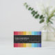 Ce carte de visite souple comporte un spectre d'arc-en-ciel de rouge au pourpre pour faire une déclaration audacieuse pour presque n'importe quelles affaires. Un panneau noir surimprimé avec un motif subtil montre une raison sociale et une information principale sur l'avant et sur l'inverse. Disponible avec les produits assortis.