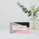 Elégant, élégant et sophistiqué, carte de visite avec motif en zigzag (chevron) en gris et blanc avec des touches de couleur rose et noire. Design moderne et tendance, parfait pour les amateurs de zigzag.
