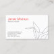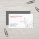 Présentez un style contemporain avec notre modèle de carte de visite, où une grue en origami noir à l'échelle audacieuse s'étend gracieusement sur le bord droit, créant un effet visuel dynamique. Votre nom se distingue par son rouge saisissant, avec son titre et ses coordonnées en noir classique, juxtaposé à gauche de la grue pour un contraste saisissant. Sur le dos, une grue d'origami blanc solitaire repose sur un fond gris, accompagné de votre URL. Ce design est parfait pour les professionnels créatifs, les experts en marketing, ou tout innovateur à la recherche d'une carte qui capte l'attention et les feuilles une impression durable. Design © 1201AM Design Studio | www.1201am.com